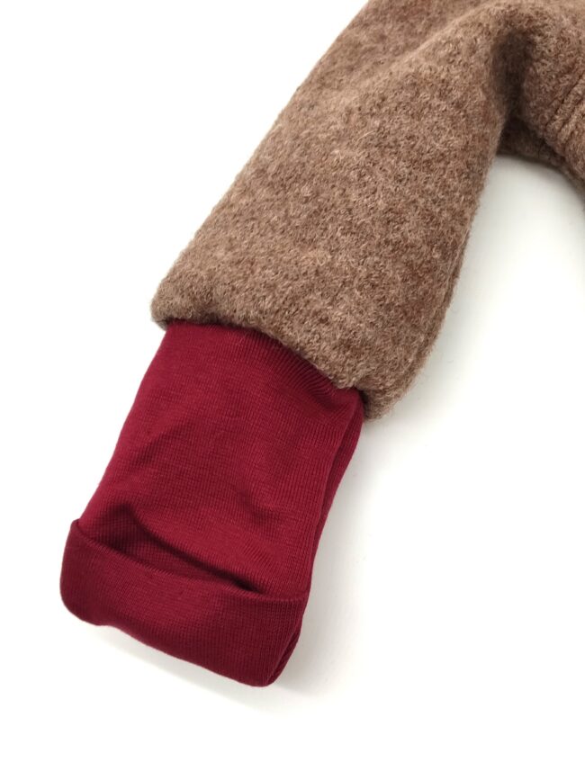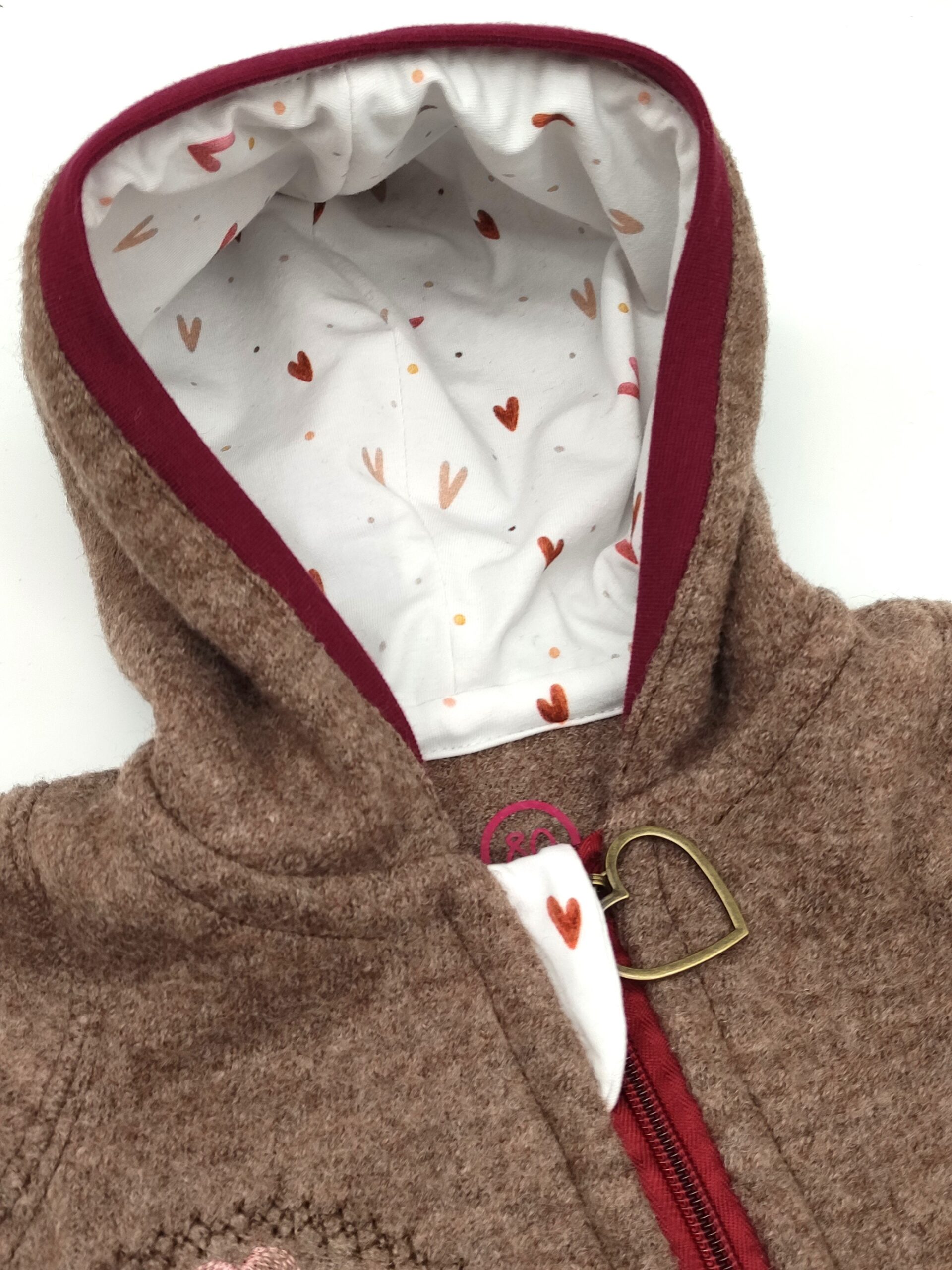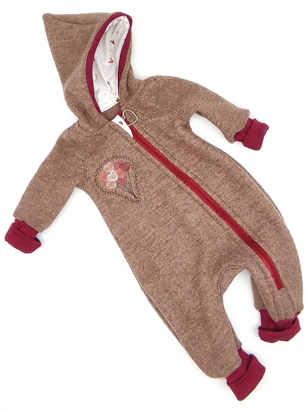 Wollwalkanzug in braun mit Herzen